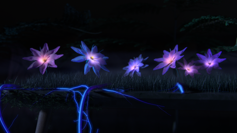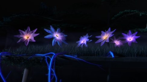 shot 1 foreground flower is the only one with particles. Add to other flowers