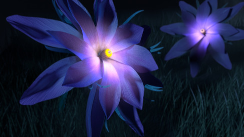 I want the flowers to look similar in color, but still have variation. With how much purple there is, I am considering having another blue flower. I also changed the inner glow of a couple flowers because they felt too orange. I'm not sure if I like the blue flower though.